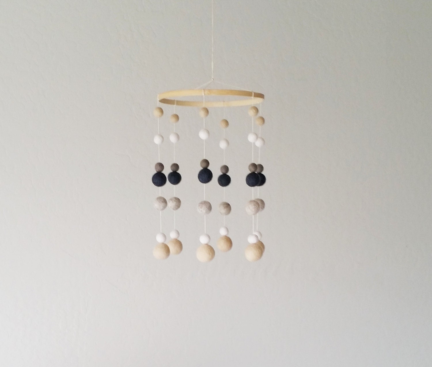 Gray and White and Sand felt ball and heart Baby Mobile